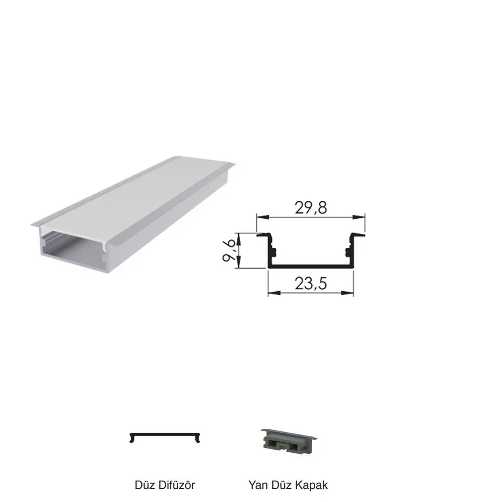 • 300 Cm Alüminyüm Barled (Çubuk) Boş Kasa Profili Sıva Altı