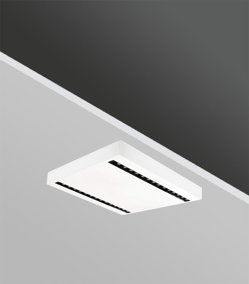 Difüzör ve plastik çerçeve tasarımlı bireysel ve homojen aydınlatma sağlayan sıva üstü armatür.