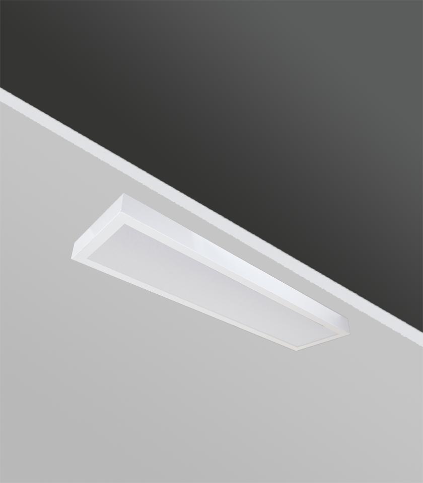 Prizmatik difüzör ve plastik çerçeve tasarımlı bireysel ve homojen aydınlatma sağlayan sıva üstü armatür.