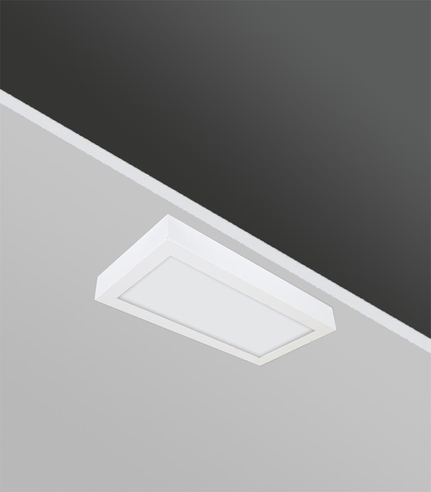 Opal difüzör ve temperli camlı, çerçeve tasarımlı bireysel ve homojen aydınlatma sağlayan sıva üstü steril ortam armatürü.