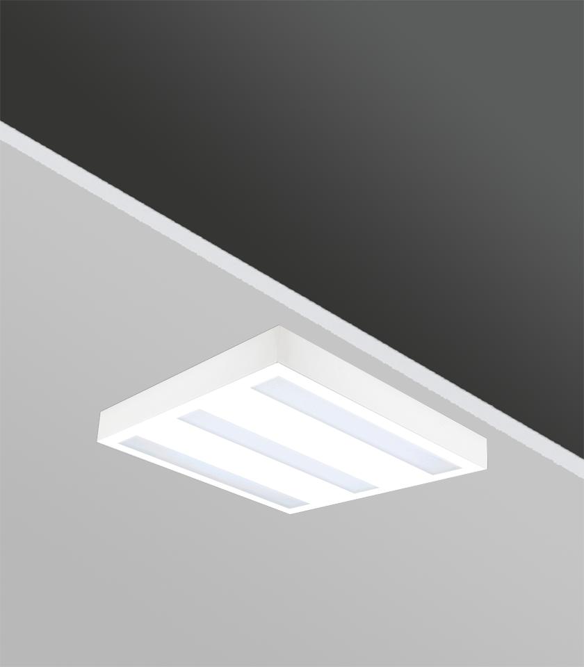 Difüzör ve plastik çerçeve tasarımlı bireysel ve homojen aydınlatma sağlayan sıva üstü armatür.