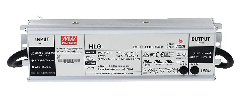 120 W, sabit akım/sabit voltaj (karma mod), SELV çıkışı ve 3'ü 1 arada kısma işlevine (1 - 10 V DC, PWM, 100 kOhm potansiyometre) sahip metal muhafaza içinde LED anahtarlamalı güç kaynakları (IP67). Bu cihazlar dahili bir PFC devresine sahiptir ve aşırı yük (otomatik kurtarma), aşırı sıcaklık, kısa devre ve aşırı gerilime karşı korumalıdır. LED aydınlatma uygulamaları için uygundurlar ve EN61347-1, EN61347-2-13, EN55015, EN61000-3-2 Sınıf C, EN61000-3-3 ve EN61547 ile uyumludurlar. Bu Mean Well serisinin aşağıdaki versiyonlarını sunuyoruz: HLG-120H-12B, HLG-120H-20B, HLG-120H-24B, HLG-120H-36B, HLG-120H-42B, HLG-120H-48B ve HLG-120H -54B.