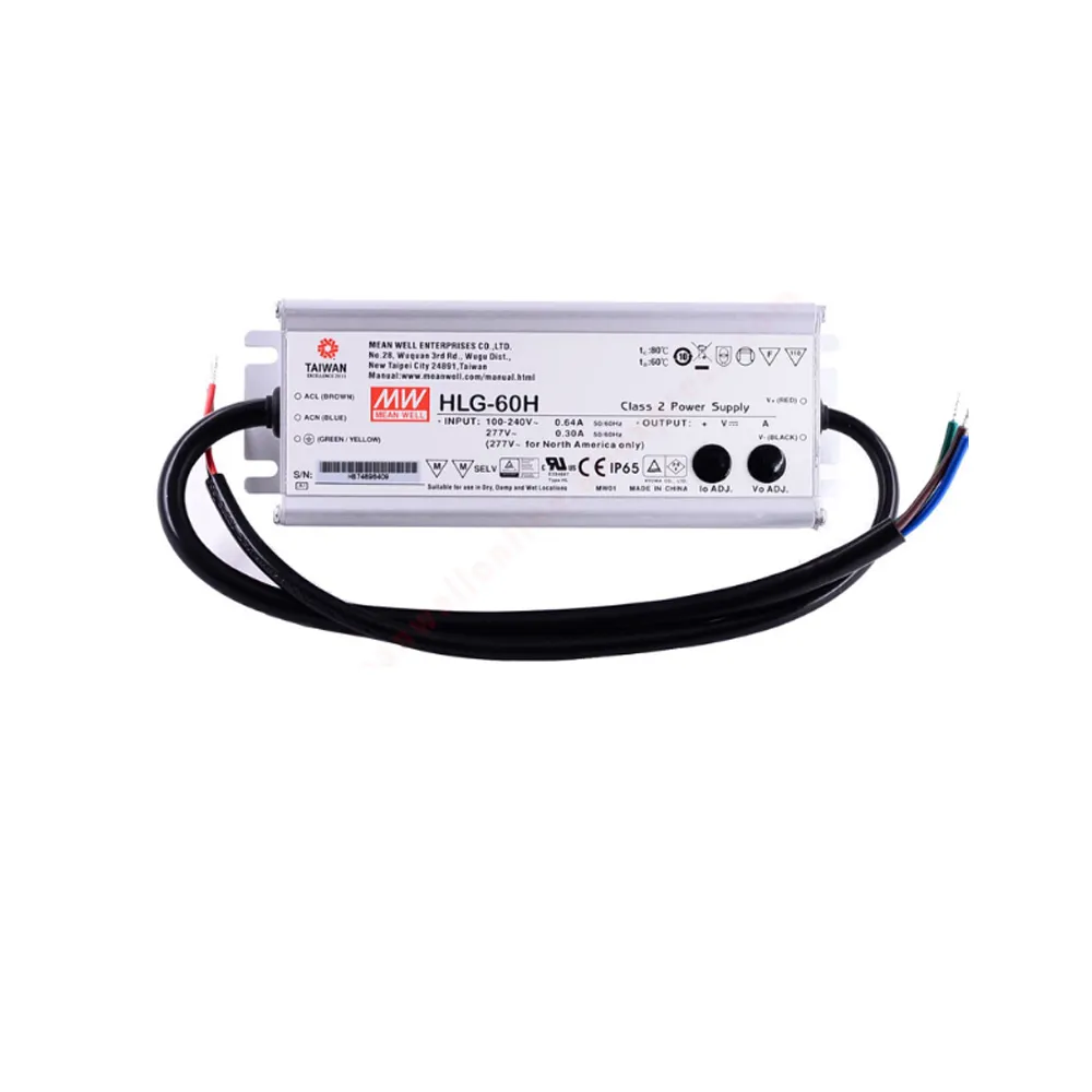60 W, sabit akım/sabit voltaj (karma mod) ve SELV çıkışı ile metal muhafaza (IP65) içinde LED anahtarlamalı güç kaynakları. Bu cihazlar dahili bir PFC devresine sahiptir ve aşırı yük (otomatik kurtarma), kısa devre, aşırı sıcaklık ve aşırı gerilime karşı korumalıdır. LED aydınlatma uygulamaları için uygundurlar, akım sınırını ve çıkış voltajını ayarlamak için bir potansiyometreye sahiptirler ve EN61347-1, EN61347-2-13, EN55015 ve EN61000-3-2 Sınıf C ile uyumludurlar. Bunun aşağıdaki versiyonlarını sunuyoruz. Ortalama Kuyu serisi: HLG-60H-15A, HLG-60H-20A, HLG-60H-24A, HLG-60H-30A, HLG-60H-36A, HLG-60H-42A, HLG-60H-48A ve HLG-60H- 54A.