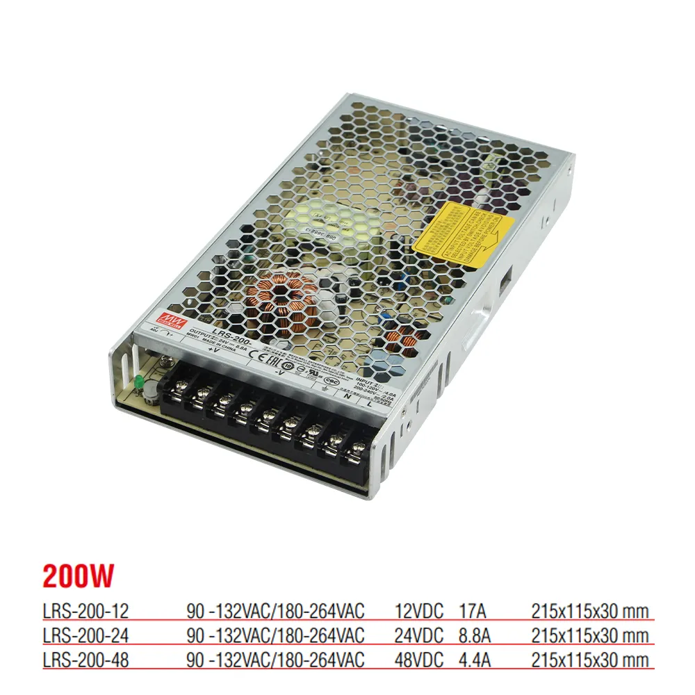 LRS-200-24 Yüksek Verimli Kapalı Tip 200 Watt 24 Vdc 8.8 Amper Güç Kaynağı