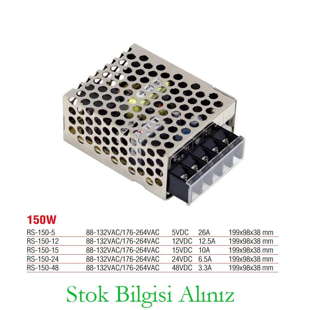 Meanwell RS-150-24 Yüksek Verimli 150 Watt 24 Vdc 6.5 Amper Standart Güç Kaynağı