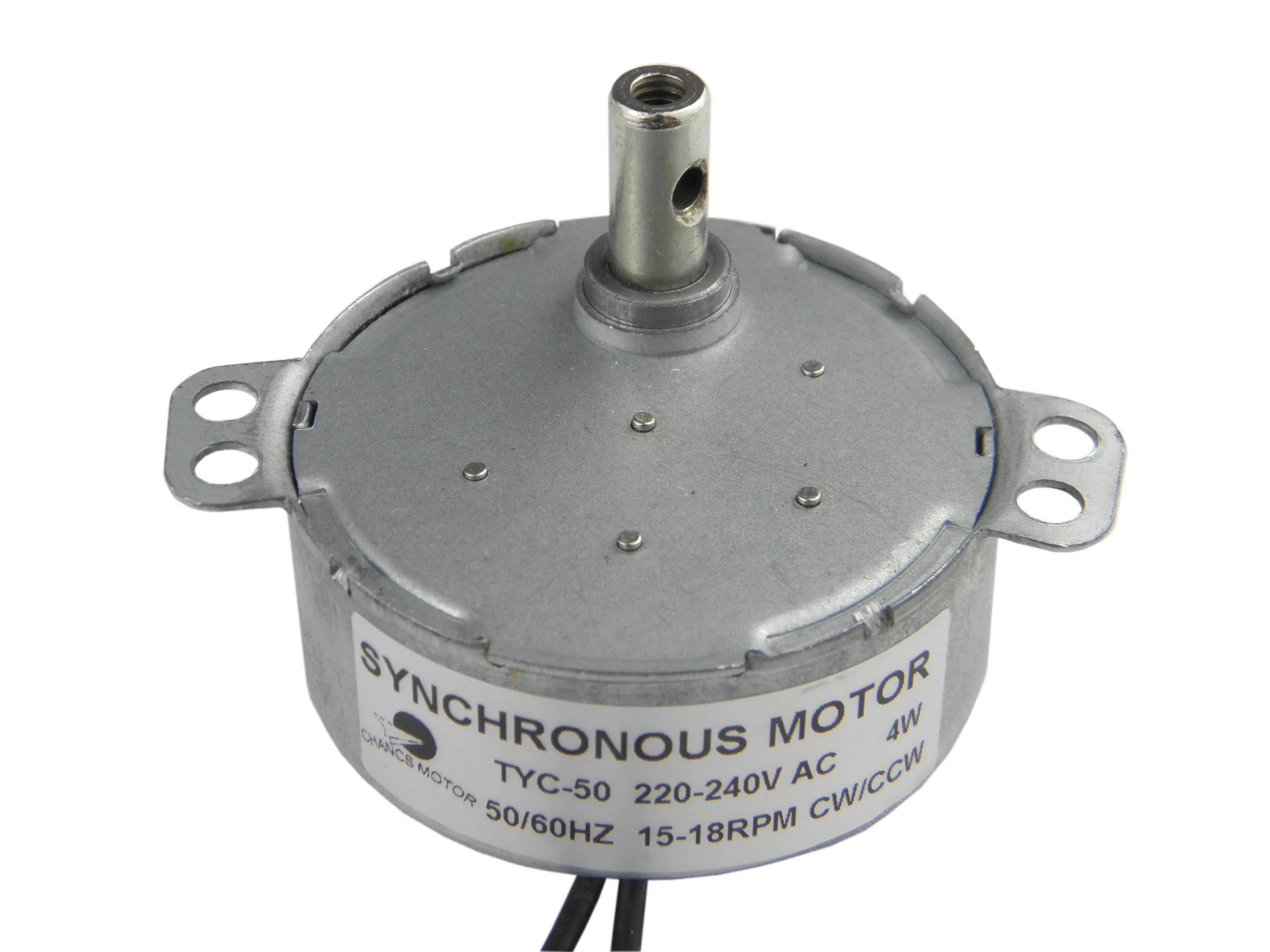 - Bu bir TYC-50 AC 220V 15-18RPM CW/CCW senkron motor, küçük güç tüketimi, düşük gürültü, küçük boyut, hafif, kullanımı kolay. Redüksiyon dişlisi, dişlinin sürekli ve sessiz çalışmasını sağlamak için metal/plastik kombinasyonudur. .