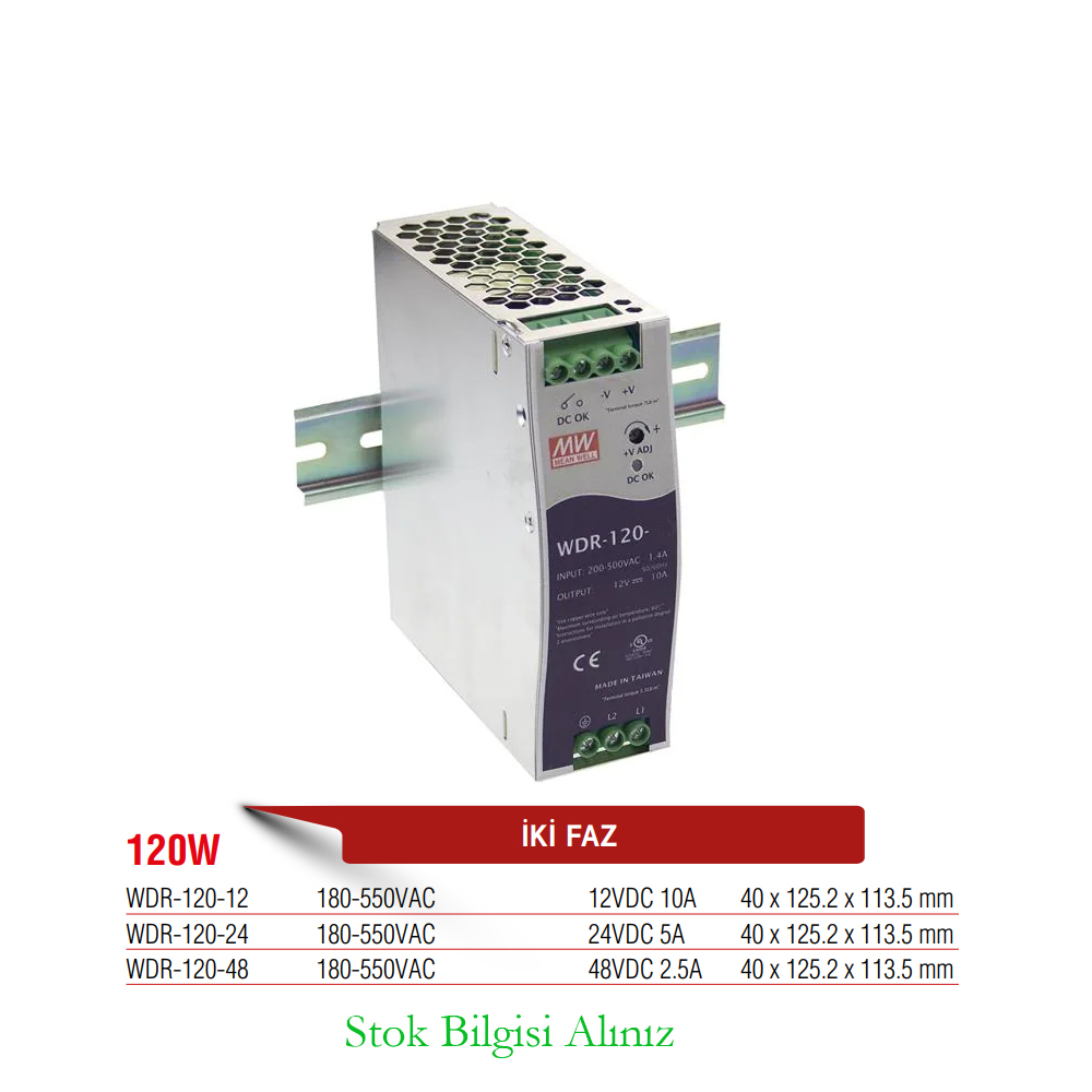 Mean Well DIN raylı güç kaynağı serisi WDR-120
